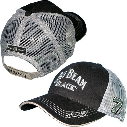 The Robby Gordon Jim Beam® adjustable mesh cap from Checkered Flag Sports is made with durable cotton twill front panels and breathable polyester mesh back panels. It's decorated in the team colors and designed with the raised Jim Beam Black® logo embroidered on the crown and the car number embroidered on the left side.